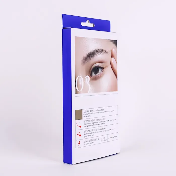 Queste scatole Hang Tab stampate sono state progettate e prodotte da Doyoupacks per un marchio di prodotti di bellezza, che ha una forte presenza nei canali di vendita al dettaglio del mercato di massa. Quando la nostra fabbrica ha inizialmente progettato la struttura dell'imballaggio, abbiamo considerato i suoi scenari di vendita e il prodotto all'interno è una penna per colorare le sopracciglia. Le scatole sospese personalizzate sono la scelta più adatta, perché sono adatte per essere esposte appese a un gancio nelle catene di vendita al dettaglio, comprese farmacie e negozi di prodotti di bellezza. Inoltre, la capacità di carico stabile e il design con apertura a doppia estremità lo rendono ideale per confezionare set leggeri e composti da più articoli, come le penne per colorare le sopracciglia.